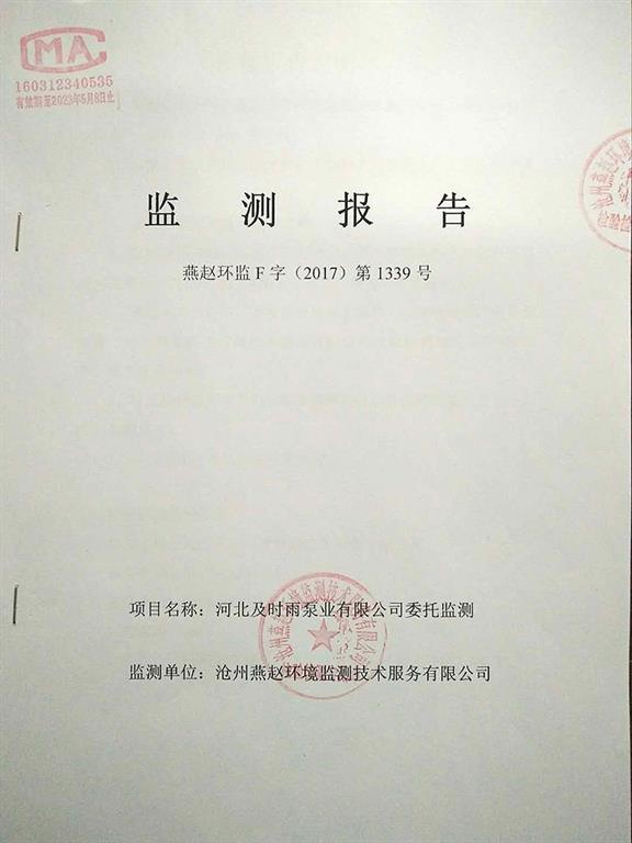 監(jiān)控報告-河北及時雨泵業(yè)有限公司