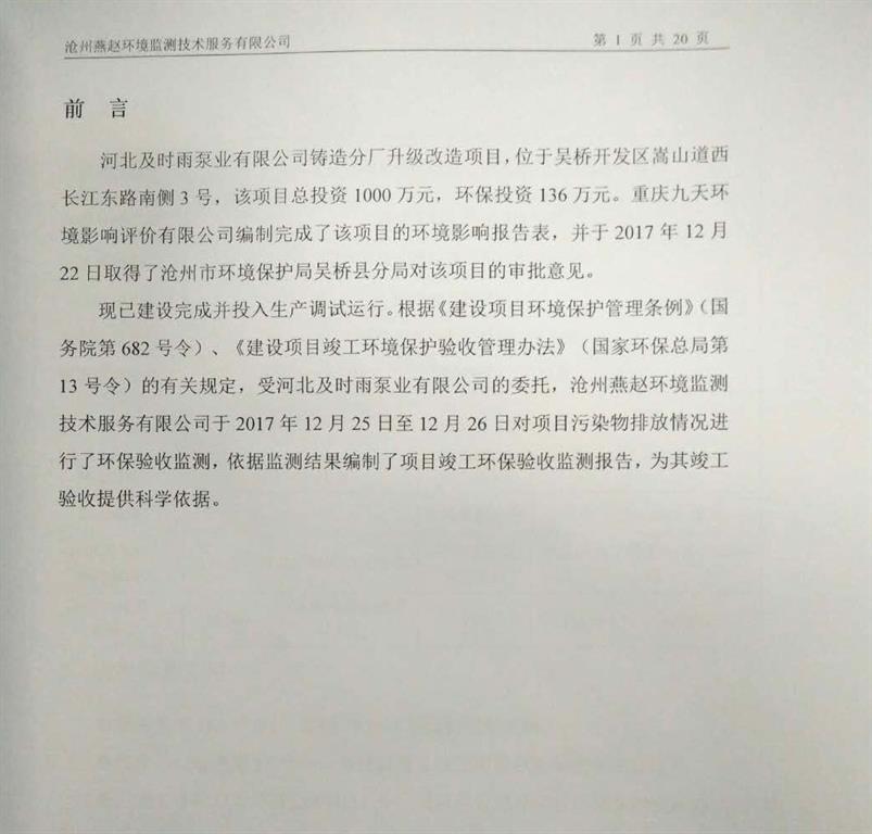 河北及時雨泵業(yè)有限公司鑄造分廠升級改造項目竣工環(huán)境保護(hù)驗收意見公示