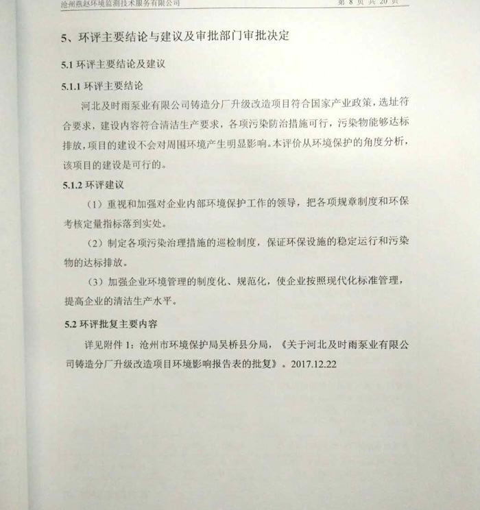 環(huán)評公示-河北及時雨泵業(yè)有限公司
