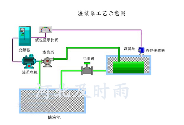 渣漿泵采用變頻調(diào)速后,實現(xiàn)了軟啟動、軟停機,對渣漿泵和電動機等機械設(shè)備的沖擊都大大減小,并且使渣漿泵的轉(zhuǎn)速在額定轉(zhuǎn)速以下運行,提高了渣漿泵的使用壽命。