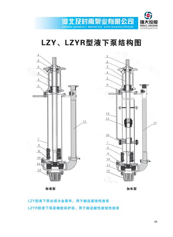 LZY、LZYR型液下渣漿泵結(jié)構(gòu)圖-河北及時雨泵業(yè)有限公司