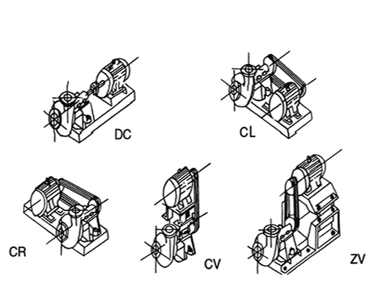 渣漿泵有多種安裝方式,泵的吐出口可沿鉛垂面旋轉(zhuǎn)安裝。傳動(dòng)方式有彈性聯(lián)軸器方式傳動(dòng)(DC傳動(dòng)),